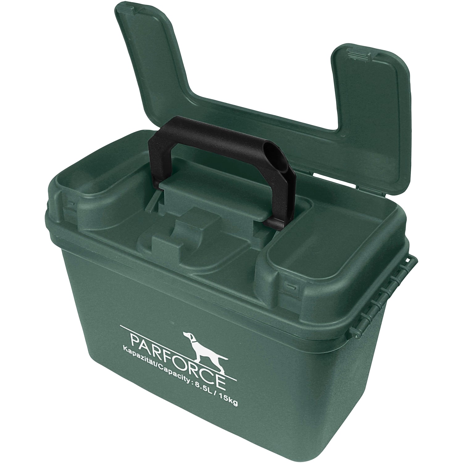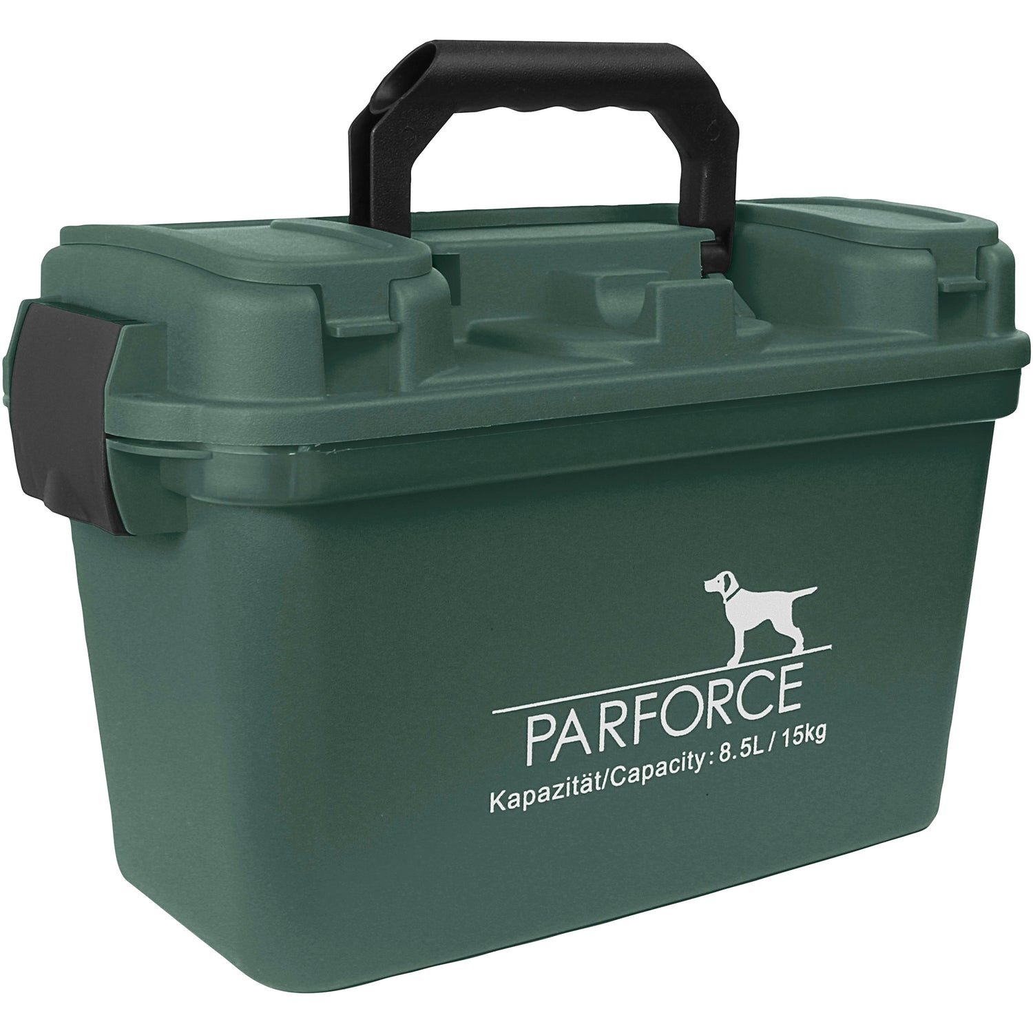 Med en indvendig volumen på 8,5 liter kan den store Parforce-transport- og ammunitionskasse nemt rumme 11x 25-skuds .12-kaliber pakker med haglgeværammunition. Udpakket er der naturligvis plads til langt mere end 275 patroner i kassen.