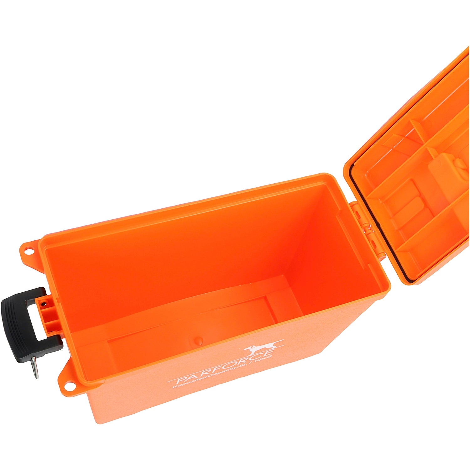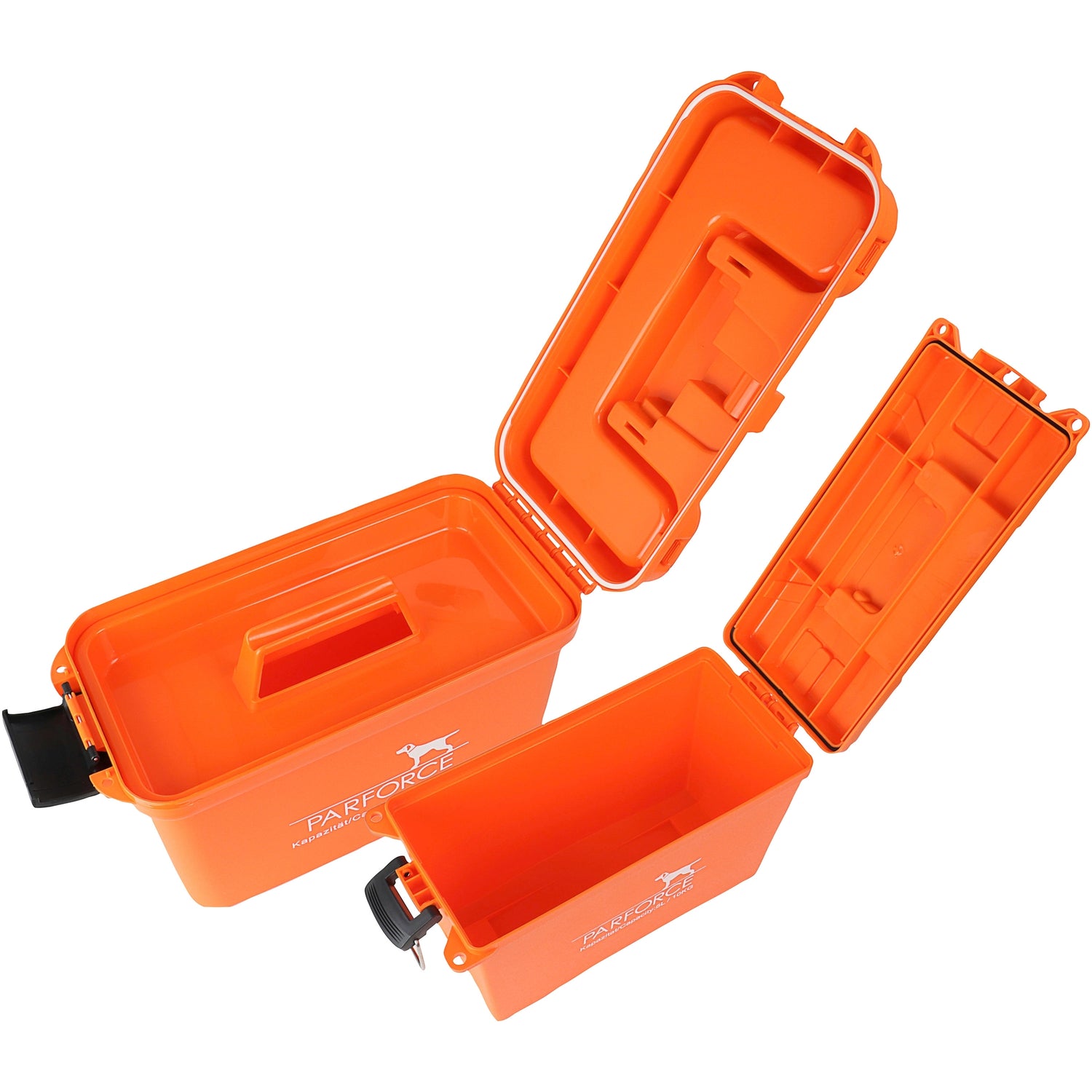 Transport- og ammunitionskasserne fra PARFORCE er ideelle til transport af jagt- og køretøjsredskaber, værktøj, hundetilbehør, ammunition osv. Den integrerede silikoneforsegling beskytter mod vandsprøjt og indtrængen af støv. Støbt af robust polypropylenplast er der garanti for ekstremt lang holdbarhed. De kan derfor bruges uden tøven, selv under ugunstige forhold. Kasserne er udstyret med et behageligt bærehåndtag, så de er nemme at transportere. Indhak i låget gør kasserne robuste og stabelbare. De har en flaplås og to huller til fastgørelse af hængelåse (medfølger ikke).