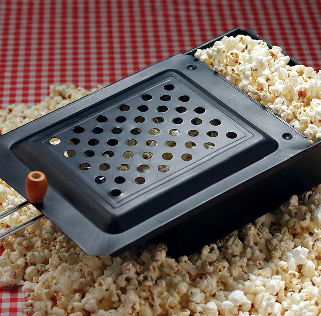 For bedste resultat kommes 3 spiseskefulde olie i bunde af panden og varmes op. Derefter tilsættes 3/4 dl popcorn og låget lukkes. Ryst jævnligt panden, og efter max et minut er dine popcorn færdige. Tag panden af bålet og tilsæt salt. Bør ikke anvendes over høje flammer, men gerne over gløder eller glødende grillkul.