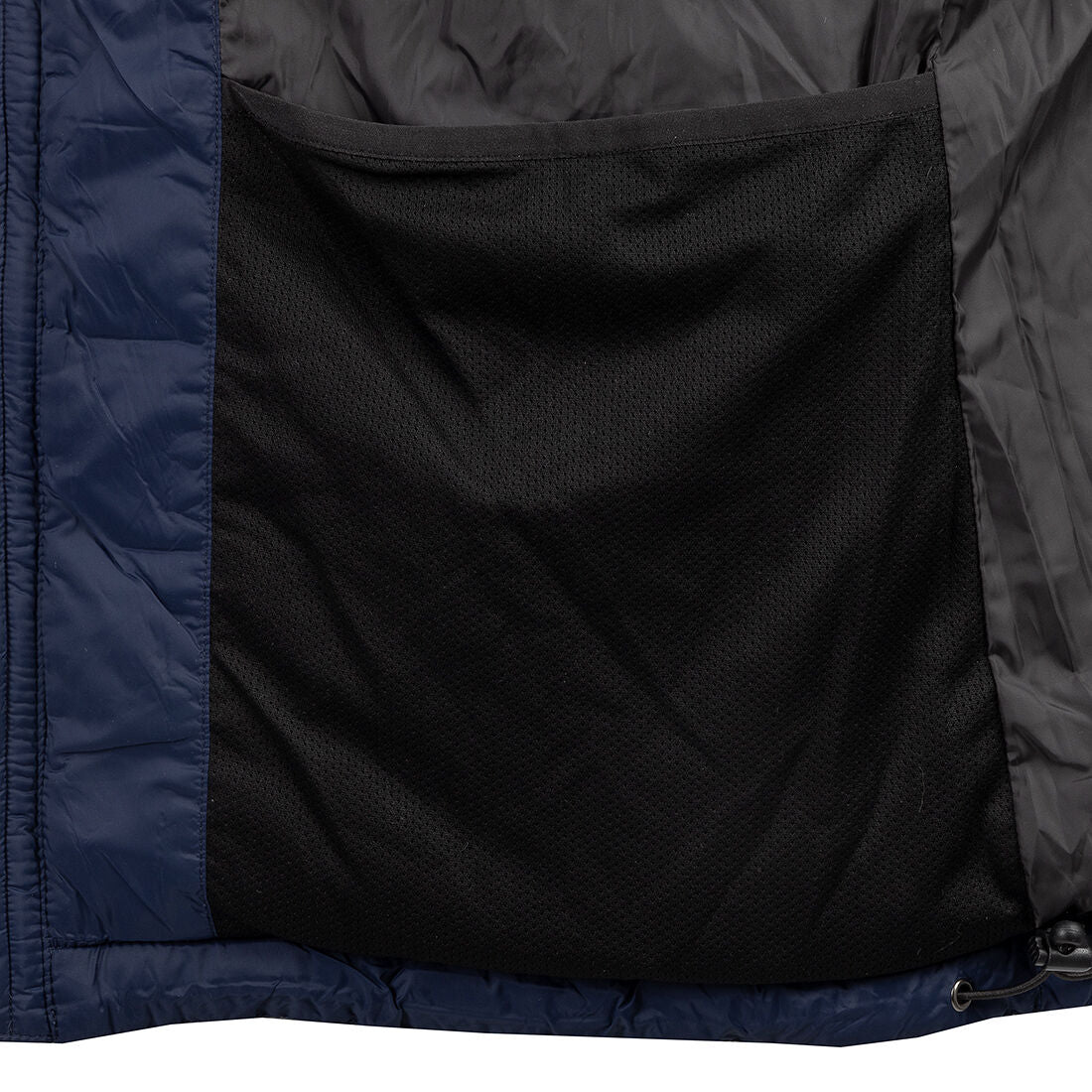 Forlommer med lynlås og 2 skjulte brystlommer med lynlås. 2 åbne inderlommer. Tunnel-lomme på ryggen med lynlås. Hætten er justerbar med en elastisk snøre og velcrolukning. 2-vejs frontlynlås. Let taljeret pasform.