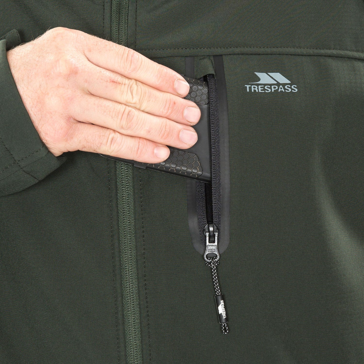Denne Trespass Accelerator Herre Softshell Jakke med hætte, har en højtydende vind- og vandtæt TPU-membran med Fabric Performance Rating på TP75.