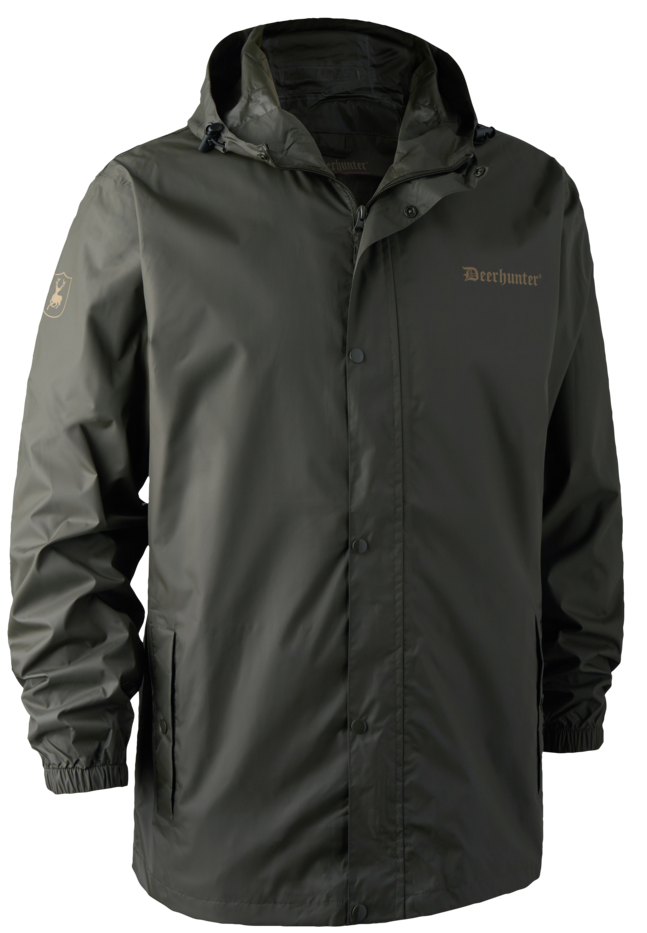 Grøn regnjakke fra Deerhunter, er en yderst vandtæt og åndbar regnjakke. Det er en letvægts regnjakke, som nemt kan pakkes sammen, så den ikke fylder særlig meget. Denne regnjakke har tapede sømme for ekstra vandtæthed. Jakken pakkes sammen ved hjælp af lommen i jakken udvendig. Der er to store indvendige lommer til personlige egendele.