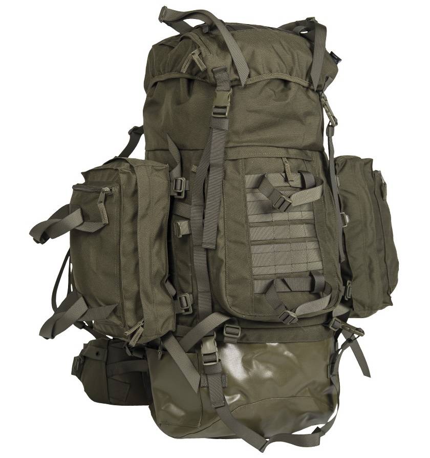En super rummelig og alsidig rygsæk med god plads til grej til lange ture. Den har en vandafvisende belægning, som hjælper med at beskytte dit grej mod vand og snavs. Det store hovedrum har en volumen på 80 liter, mens de 2 aftagelige sidelommer rummer 10 liter hver, integreret regnslag i top låg. Tykke polstrede ergonomiske skulderstropper med D-ringe. Tyk polstret justerbar hoftesele med lynlås lomme og karabinhage. Aluminium skinne i ryggen til stabilisering. Bærehåndtag og flere Molle fastgørelse sløjfer rundt på rygsækken. Justerbare kompressionsremme i siden og på toppen af låget, til at fastsætte yderligere gear.
